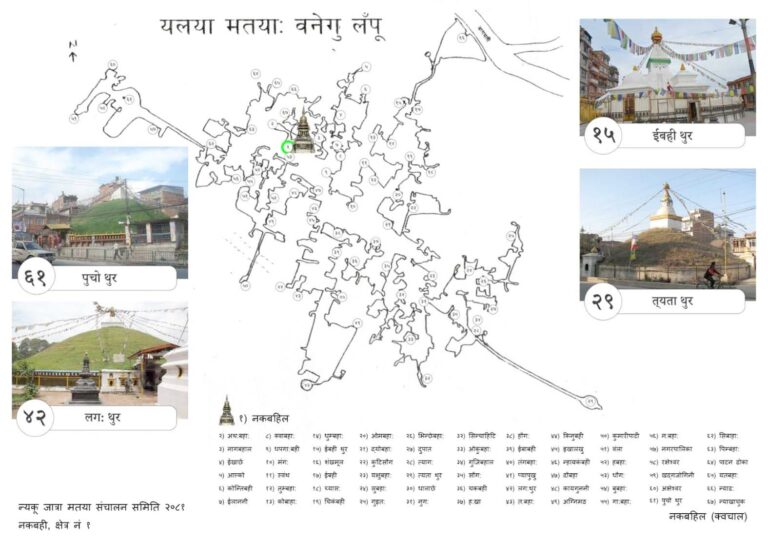 यसरी परिक्रमा गर्दा झन्डै २ हजारको देवीदेवतालाई परिक्रमा गर्छन्। यसक्रममा धूप, दियो, कपूर, पैसा, मिठाईलगायत सामग्री चढाउन नगरपरिक्रमा गर्ने गरिन्छ। न्यकू जात्रा–मतयाःमा कतिपय मानिसहरू दिवंगत आत्माको नाममा महादीप बालेर पनि आउने गर्दछन्। यसो गर्नाले वर्ष दिनभित्र मृत्यु भएका पितृले स्वर्गमा बास पाउने धार्मिक विश्वास छ।