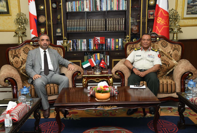 त्यस्तै, आजै प्रधान सेनापति र नेपालका लागि संयुक्त अरब इमिरेट्स (युएई) का राजदूत अब्दुल्ला सईद मुबारक जारवान अल शम्सबीच शिष्टाचार भेटघाट भएको छ ।