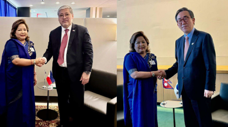 यसैक्रममा मङ्गलबार उनले दक्षिण कोरिया र फिलिपिन्सका विदेशमन्त्रीसँग छुट्टाछुट्टै द्विपक्षीय भेटवार्ता गरेकी हुन्। मङ्गलबार उनले दक्षिण कोरियाका विदेशमन्त्री चो ताय‐युलसँग गरेको द्विपक्षीय भेटवार्तामा दुई देश मित्रता, पारस्पारिक सम्मान र समझ्दारीमा आधारित सम्बन्धका साथ अघि बढेका र आगामी दिनमा सम्बन्धलाई थप प्रगाढ बनाउँदै लगिने विषयमा कुराकानी भएको थियो।