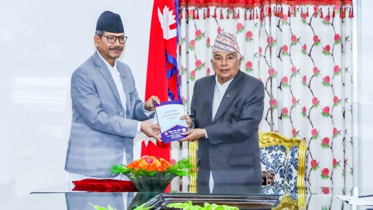 राष्ट्रपति भवन शीतल निवासमा आज आयोजित कार्यक्रममा राष्ट्रपति पौडेलसमक्ष आयोगका अध्यक्ष देवराज विश्वकर्माले नेपालको संविधानको धारा २९४ को उपधारा (१) बमोजिम आर्थिक वर्ष २०८०/८१ को आयोगको वार्षिक कामको प्रतिवेदन पेस गरेको राष्ट्रपतिको कार्यालयका प्रवक्ता शैलजा रेग्मी भट्टराईद्वारा जारी विज्ञप्तिमा उल्लेख छ ।