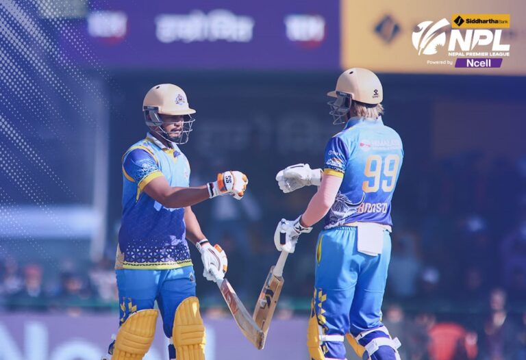 अर्जुन घर्तीले २५, बाबर हायातले २०, र चाडविक वाल्टनले १३ रनको योगदान गरे । लुम्बिनीका विकास आग्रीले तीन तथा तिलक भण्डारीले दुई विकेट लिए। कप्तान रोहित पाैडेल र सिमोन्ड्स सादबिन जाफरले समान एक/एक विकेट हात पारे । लुम्बिनीले केहि बेरमा जवाफी ब्याटिङ सुरु गर्ने छ ।