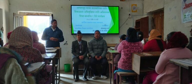 जिल्लाका नौ वटै स्थानीय तहमा आधारभूत तहका बालबालिका लागि सिकाई अभिवृद्धि गर्ने उद्देश्यले जिल्लाका विभिन्न सामुदायिक विद्यालयमा अभिभावक प्रशिक्षण कार्यक्रम गर्दै आएको सामाजिक विकास कार्यालय बाजुराका प्रमुख मीन लामिछानेले बताए ।