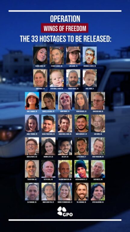 इजरायल सरकारले हमास विद्रोहीद्वारा अपहरण गरिएका ३३ बन्धकहरूको नाम सार्वजनिक गरेको छ।