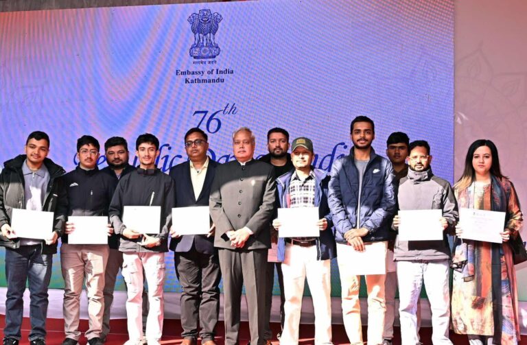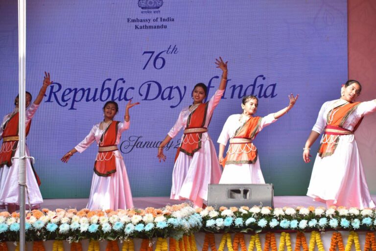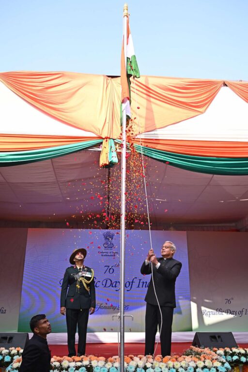 काठमाडौंस्थित भारतीय राजदूतावासमा आज भारतको ७६ औं गणतन्त्र दिवस मनाएको छ ।
