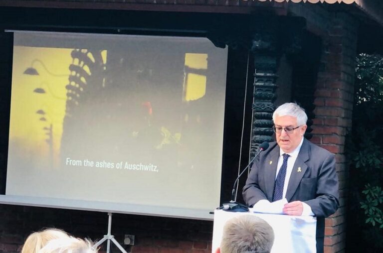 कार्यक्रममा जर्मनी दूताबासका उपप्रमुख बेन्जामिन सिडेलले होलोकास्ट ग्यास चेम्बरबाट शुरु भएको भन्दा पनि घृणाका शब्दहरुबाट शुरु भएको जिकिर गर्दै लोकतन्त्रमा यस्तो बर्बरता र क्रूरता सह्य नहुन बताए । जर्मनी यस्तो भेदभावविरुद्ध दृढ रुपमा उभिएको जानकारी दिँदै उनले जर्मनी अहिले इजरायलको सबैभन्दा ठूलो व्यापार साझेदार भएको तथ्य उजागर गरे ।