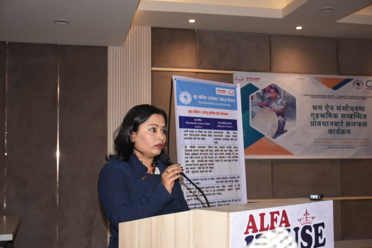 श्रम ऐन संशोधनमा गृह श्रमिक सम्बन्धित प्रावधानबारे छलफल कार्यक्रममा श्रम तथा सामाजिक अध्ययन केन्द्र (क्लास नेपाल) का कोषाध्यक्ष तथा कार्यपत्र प्रस्तोता गोमा पाण्डेले कार्यगत रोजगार अन्तर्गत आउने गृह श्रमिकहरुलाई श्रम ऐन संशोधनमा सम्बोधन गर्न सकेमा स्थानीय तहमा पंजीकरण गरी सूचीकृत गर्न सकिनेछ । यसले अनौपचारिक क्षेत्रमा सामाजिक सुरक्षालाई पुर्याउन मदत गर्नेछ भन्नुभयो ।