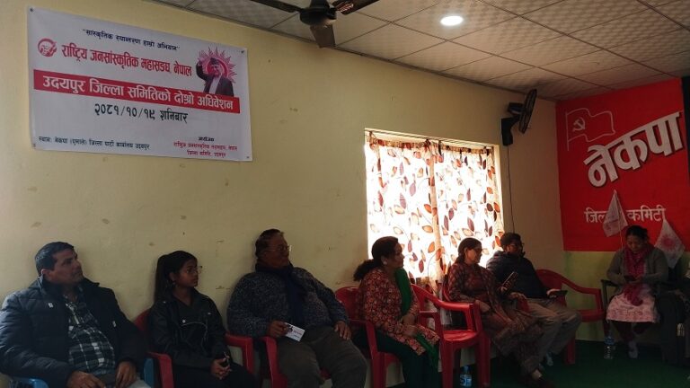 नेकपा एमालेको २३ वटा जनवर्गिय संगठन मध्ये सबैभन्दा सशक्त र जुझारु संगठनको रुपमा रहेको राष्ट्रिय जनसांस्कृतिक महासंघ नेपाल उदयपुर जिल्ला शाखाको दोस्रो जिल्ला अधिवेसनले खिलराज कार्कीको अध्यक्ष्तामा १५ सदस्यीय जिल्ला कार्यसमिति गठन गरेको छ ।