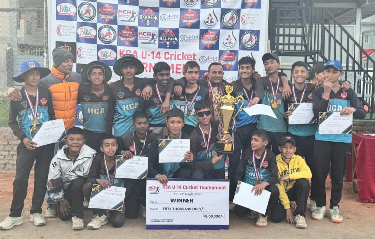 हिमालयन क्रिकेट एकेडेमीले केसीए यु–१४ क्रिकेट प्रतियोगिताको उपाधि जितेको छ। सोमबार भएको फाइनल खेलमा हिमालयनले ओएसिस क्रिकेट एकेडेमीलाई ६० रनले हराउँदै उपाधि जितेको हो।