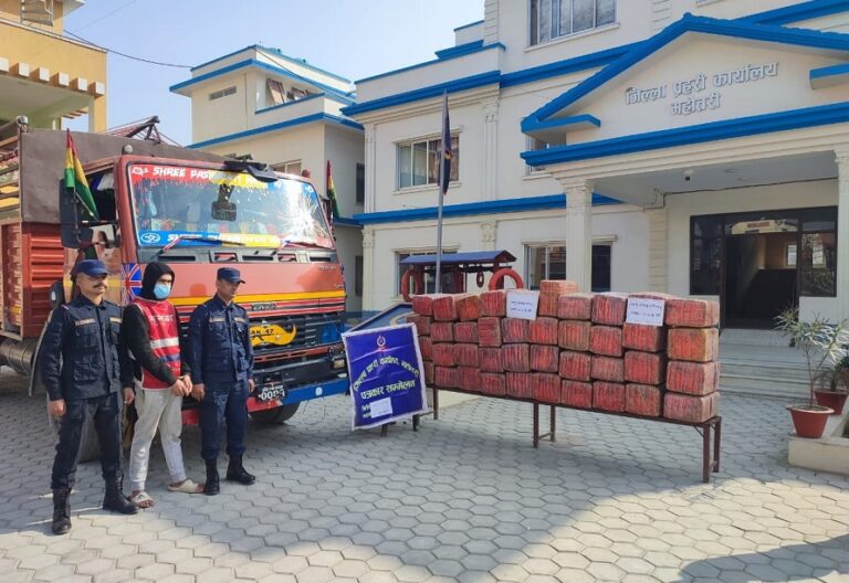 महोत्तरीबाट प्रहरीले ट्रकसहित ६०४ चार किलो गाँजा बरामद गरेको छ। बिहीबार राति साढे १० बजे प्रहरीले भंगाहा नगरपालिका-६ मजरास्थित बर्दिबास-जलेश्वर सडकबाट ट्रकमा लोड गरिएको गाँजा बरामद गरेको हो।