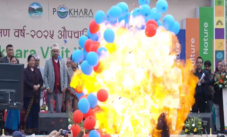 गत शनिवार पोखरा प्रदर्शनी केन्द्रमा पोखरा भ्रमण वर्ष उद्घाटन गर्ने क्रममा बलुनमा आगोको झिल्कोले लागेर पड्किदा अर्थमन्त्री विष्णु पौडेल र पोखराका मेयर धनराज आचार्य घाइते भएका थिए।