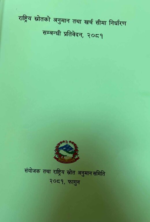 त्यसअनुरुप नै आयोगले अर्थ मन्त्रालयमा राष्ट्रिय स्रोतको प्रारम्भिक अनुमान तथा खर्च सीमा निर्धारण सम्बन्धी प्रतिवेदन २०८१ पेश गरेको छ ।