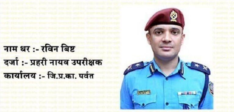 जिल्ला प्रहरी कार्यालय पर्वतका प्रहरी नायब उपरीक्षक (डिएसपी) रविन विष्ट गण्डकी प्रदेशको उत्कृष्ट प्रहरी बनेका छन्। पर्वत जिल्ला प्रहरी प्रमुख रहेका विष्टलाई गण्डकी प्रदेश प्रहरी कार्यालयले माघ महिनाको उत्कृष्ट प्रहरी घोषित गरी पुरस्कृत गरेको हो।