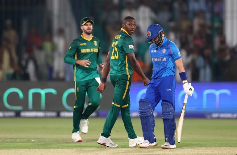 त्यसैगरी एडन मार्क्रमले अविजित ५२ रन बनाएका थिए भने डेभिड मिलरले १४ रन बनाएका थिए । त्यसैगरी अफगानिस्तानका बलर मोहमद नावीले २ विकेट लिए भने नूर अहमद, अजमतुल्लाह ओमारजाई र फाजलहक फारुकीले एक एक विकेट लिएका थिए ।