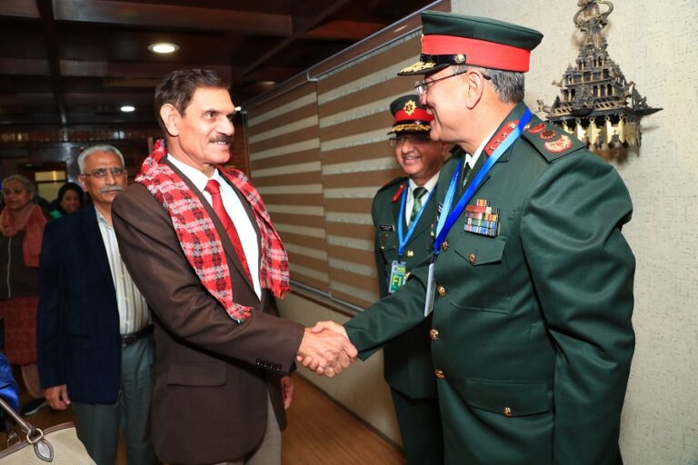 नेपाली सेनाका मानार्थ महारथी तथा भारतीय सेनाका ६ जना पूर्व स्थल सेनाध्यक्षहरु मंगलबार काठमाडौँ आइपुगेका छन्। महाशिवरात्रि तथा नेपाली सेना स्थापनाको २६२औँ वार्षिकोत्सवको अवसरमा आयोजना हुने कार्यक्रममा सहभागी हुन जनरल जोगिन्दर जसवन्त सिंह (अ.प्रा.), जनरल दीपक कपुर (अ.प्रा.), जनरल (डा.) विजय कुमार सिंह (अ.प्रा.), जनरल दलवीर सिंह सुहाग (अ.प्रा.), जनरल (डा.) मनोज मुकुन्द नरवणे (अ.प्रा.) र जनरल मनोज पाण्डे (अ.प्रा.)नेपाली सेनाको निमन्त्रणामा काठमाडौँ आइपुगेका हुन् ।