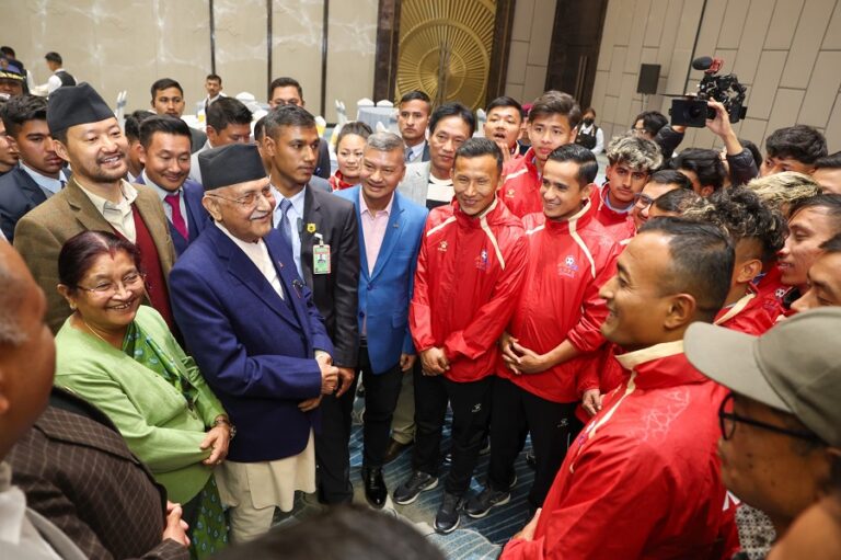 प्रधानमन्त्री केपी शर्मा ओली र तेश्रो केपी ओली कप फुटबल च्याम्पियनसिपका खेलाडी तथा आयोजकबीच आज भेटघाट भएको छ ।