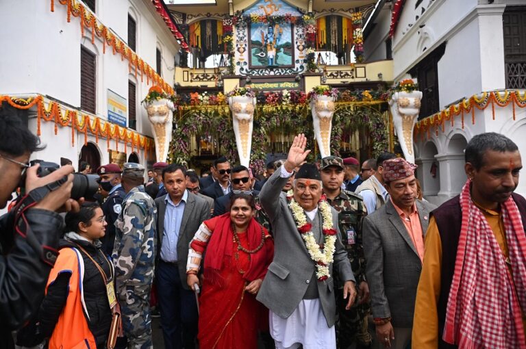 राष्ट्रपति रामचन्द्र पौडेलले प्रथम महिला सबिता पौडेलसहित महाशिवरात्रिको अवसरमा पशुपतिनाथको दर्शन एवं पूजाआराधना गरेका छन् । महाशिवरात्रि २०८१ का अवसरमा राष्ट्रपति पौडेलले बुधबार अपरान्ह पशुपतिनाथको दर्शनसहित पूजाआराधना गरेका हुन् ।
