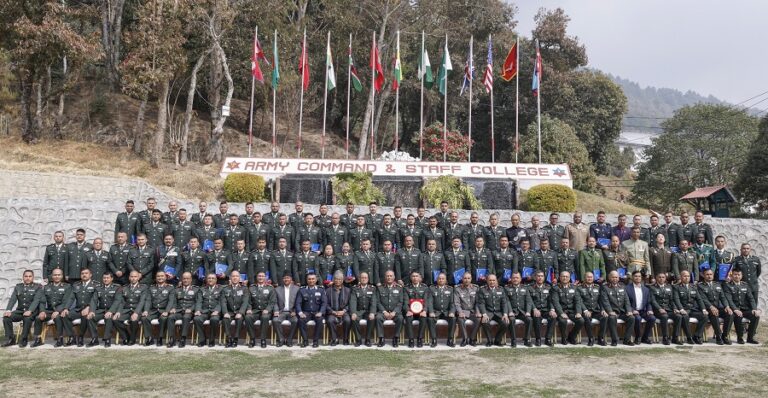 सैनिक कमाण्ड तथा स्टाफ कलेजमा गत वैशाख ०३ गतेबाट सुरु भएको सि.सं.३१ कमाण्ड तथा स्टाफ तालिमको दीक्षान्त समारोह बिहीबार सम्पन्न भएको छ। दीक्षान्त समारोहका प्रमुख अतिथि प्रधान सेनापति अशोक राज सिग्देलले तालिम सफलतापूर्वक सम्पन्न गरेका शिक्षार्थी अधिकृतहरूलाई बधाई ज्ञापन गर्दै शुभकामना व्यक्त गर्नु भयो।