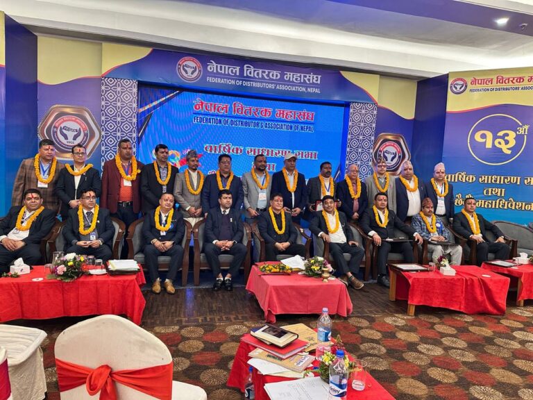 अध्यक्षको मन्तव्य राख्दै वितरक महासंघका अध्यक्ष हरिराज पन्तले स्वदेशमै उत्पादन भएका एवं बाह्य बजारबाट आयात गरिएका विभिन्न उत्पादनहरु वितरण तथा बजारीकरणमा संलग्न व्यवसायीहरुको अभिभावकीय संस्थाका रुपमा रहेको संस्थाले आफ्ना व्यवसायिक हकहितलाई सर्वोपरी राखी सामाजिक उत्तरदायित्व वहन गर्दै अघि बढ़ेको बताए ।