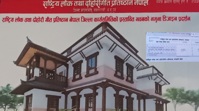 राष्ट्रिय लाेक तथा दाेहाेरीगीत प्रतिष्ठान नेपाल नवलपुर,नवलपरासीपूर्वकाे भवन निर्माणका लागि गण्डकी प्रदेश प्रतिष्ठानले १ लाख रूपैयाँ नगद सहयोग गरेकाे छ।