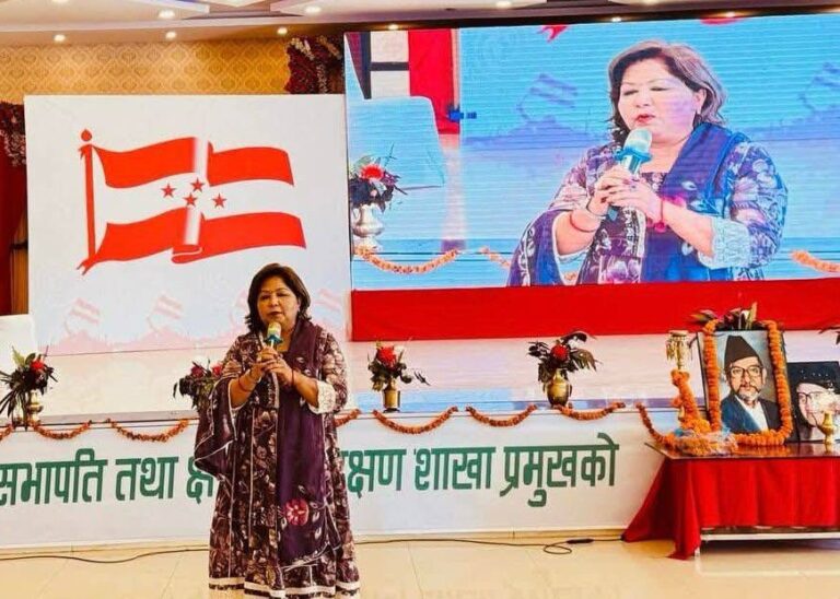 नेपाली कांग्रेस केन्द्रीय प्रशिक्षण प्रतिष्ठानले रुपन्देहीको भैरहवामा पर्टीका प्रतिनिधिसभा क्षेत्रीय सभापति तथा प्रशिक्षण शाखा प्रमुखका लागि आयोजना गरेको प्रशिक्षणमा उनले भनिन् “अहिले विदेशमा नेपालीहरु यतिधेरै समस्यामा परिरहेका छन् कि परराष्ट्र मन्त्रालयको काम त यसो हेर्दा उनीहरुको उद्धार गर्नेजस्तो मात्र भएको छ ।”