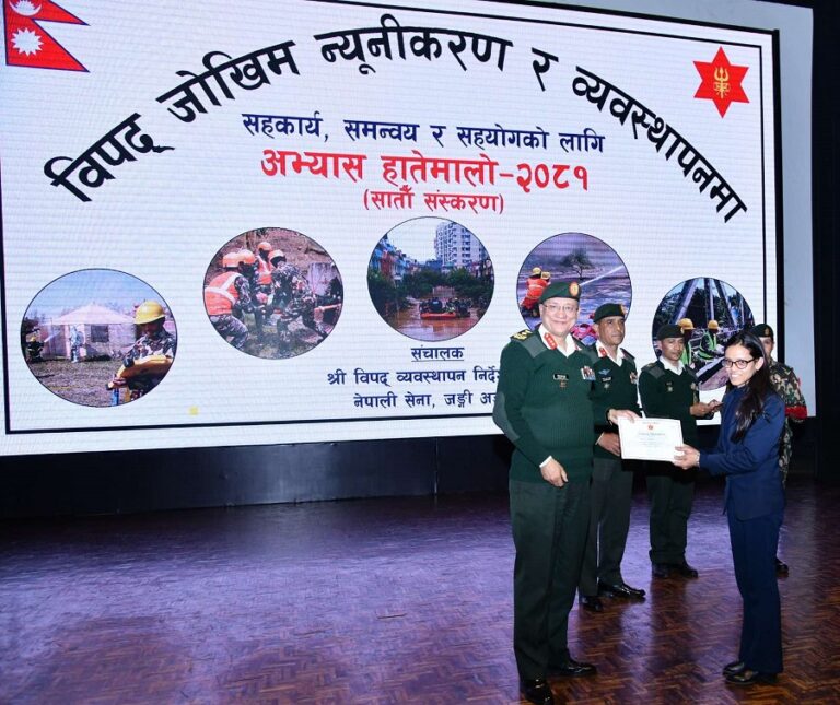 विपद् जोखिम न्यूनीकरण एवं व्यवस्थापनका विविध पक्षहरू समेटी नेपाली सेनाको अगुवाइमा राष्ट्रिय स्तरमा विपद् व्यवस्थापनसँग सरोकार राख्ने सम्पूर्ण निकायहरूको सहभागितामा सञ्चालन भएको अभ्यास हातेमालोको सातौं संस्करण मंगलबार सम्पन्न भएको छ ।