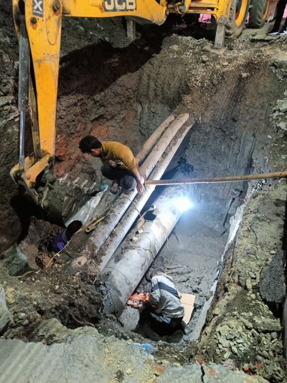 काठमाडाैं उपत्यका खानेपानी लिमिटेड (केयुकेएल)को प्राविधिक टोलीले फुटेको पाइपलाईन मङ्गलबार दिउँसोदेखि मर्मत कार्य सुरु गरी आज बुधबार बिहान ४ बजे मात्रै मर्मतको काम सम्पन्न गरेको काठमाडौँ उपत्यका खानेपानी लिमिटेड (केयुकेएल)का इञ्जिनियर प्रकाश बरालले जानकारी दिए ।
