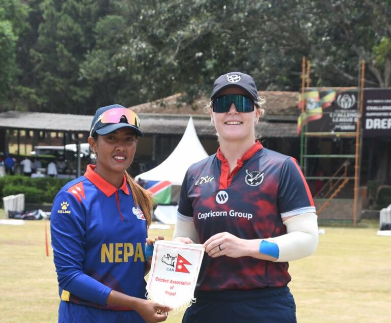 युगाण्डा क्रिकेट एसोसियसनको आयोजनामा आजदेखि शुरुभएको चार देशीय सिरिज अन्तर्गत नेपालले नामिबियाविरुद्ध टस जितेर पहिला ब्याटिंग गर्दै १९.५ ओभरमा ९२ रन बनाएर अल आउट भएको हो ।