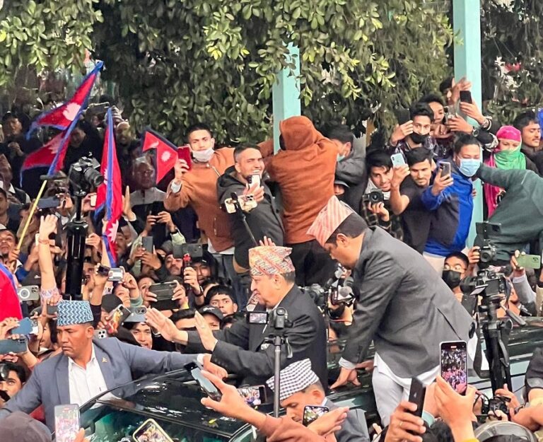 अहिले त्रिभुवन विमानस्थलबाहिर ठूलो संख्यामा भीड जम्मा भएको छ भने शाहलाई निर्मल निवास पुर्याउन र्याली आयोजना गरिएको छ ।