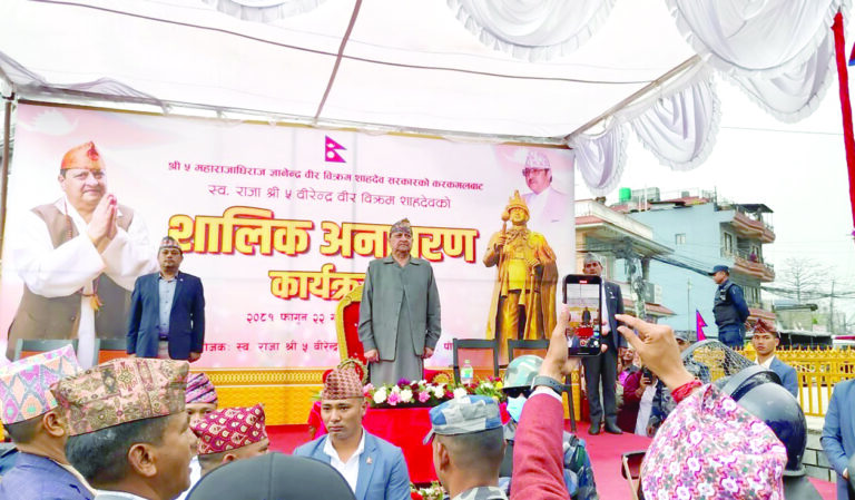 शालिक अनावरणका क्रममा राजावादीसँगै हिन्दू धर्मसँग सम्बन्धित संघसंस्थाका प्रतिनिधिको बाक्लो उपस्थिति थियो । उपस्थित शुभेच्छुक समर्थकले राजाको जयजयकार गर्दै ‘वीरेन्द्र अमर रहून्’, ‘अघि बढ्नुस् महाराज, जनता तिम्रो साथमा छन्’, ‘हाम्रो राजा हाम्रो देश प्राण भन्दा प्यारो छ’, लगायत नारा लगाएका थिए ।