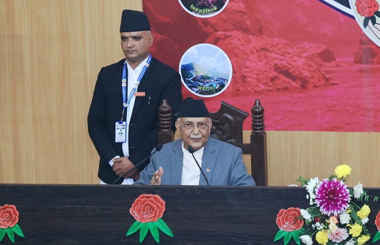 “हामी जनताको गरिबी र पछ्यौटेपन हटाएर जान चाहान्छौँ । गरिबी हटाएर मात्रै हामी सन्तोष मान्दैनौँ । समग्र मानवीय जैविक र न्यायोजित आवश्यकताको परिपूर्ति गरेर मुलुकलाई अगाडि बढाउनुछ ।’’, प्रधानमन्त्री ओलीले भने, “नागरिक सर्वाेच्चता भएको यस प्रणालीमा रहेर अब हामी समृद्धिका लागि छिटो काम गर्न चाहन्छौँ । रोजगारीका अवसरमा सृजना गर्न चाहन्छौँ । त्योभन्दा पहिला हामीले उद्यमशीलतामा जोड दिनुपरेको छ । त्यसकारण देशलाई पछाडि फर्काउने होइन, अगाडि बडाउने हो । संविधानबमोजिम तीनै तहका सरकारले सहकार्य गरेर देश विकासमा लाग्नुपर्छ ।’’