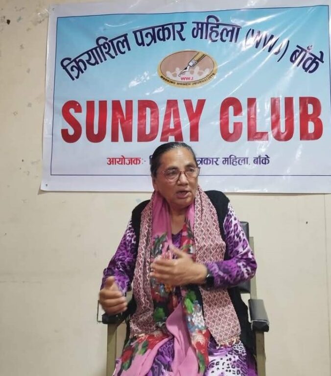 क्रियाशिल पत्रकार महिला बाँकेले सण्डे क्ल्व अन्र्तगत आज नेपालगन्जमा सम्पन्न गरेको कार्यक्रममा मुख्य बक्ताका रुपमा सुवेदीले संविधानले तोकेको अधिकार समेत नपाउनु दुःखद भएको बताइन् ।