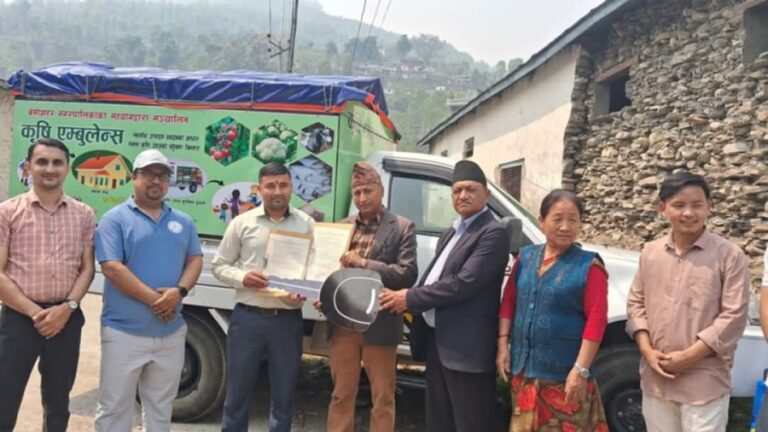 समित्व नगरपालिकामै रहनेगरी आगामी असार मसान्तसम्म संचालन तथा व्यबस्थानपका लागि एकता कृषि सहकारी संस्थालाई कृषि एम्बुलेन्स प्रदान गरिएको बेसीशहर नगरपालिकाका प्रमुख प्रशासकीय अधिकृत चेतनाथ अर्यालले बताए ।