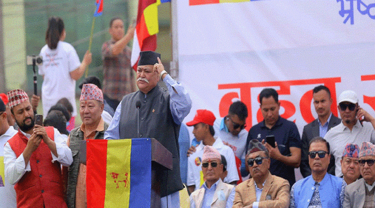आज आयोजित राप्रपाको आमसभामा बोल्दै सिंहले भने, ‘यो सभामा मैले कांग्रेस, एमाले र माओवादीका पनि धेरै राष्ट्रवादी साथीहरु देखिराखेको छु । देश र जनता बचाउन सबै एकजुट हुनुपर्ने अवस्था आएको छ । यो तस्करले चलाएको भ्रष्ट सरकारलाई जडबाट उखेलेर फ्याकिदिउँ । अहिले पनि यो सरकार सुध्रिएन भने बंगलादेश र श्रीलंकाको अवस्था नेपाली जनताले ल्याउने छ ।’