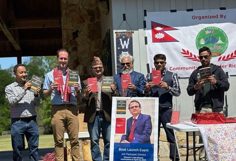 एमाजन डट् कमले प्रकाशन गरेका वान्डरिङ वर्ड्स र थ्री डाइमेन्सन्स अफ बुद्धिजम नामक पुस्तक आइतबार भर्जिनियाको रिचमन्ड शहरमा आयोजित एक समारोह वीच भर्जिनियाका सिनेटर स्काइलर टी भ्यान भ्याकेन्वर्ग,लेखक घिमिरे,नेपाली कम्युनिटी अफ रिचमन्ड,भर्जिनियाका अध्यक्ष चन्द्र मल्ल,उपाध्यक्ष असीम राजभण्डारी,कोषाध्यक्ष रूकेश पोख्रेल,न्याकका सदस्य घनेन्द्र लामिछाने,समाजसेवी रोशन घिमिरे र अन्य अतिथिले संयुक्त रूपमा विमोचन गरेका हुन् ।