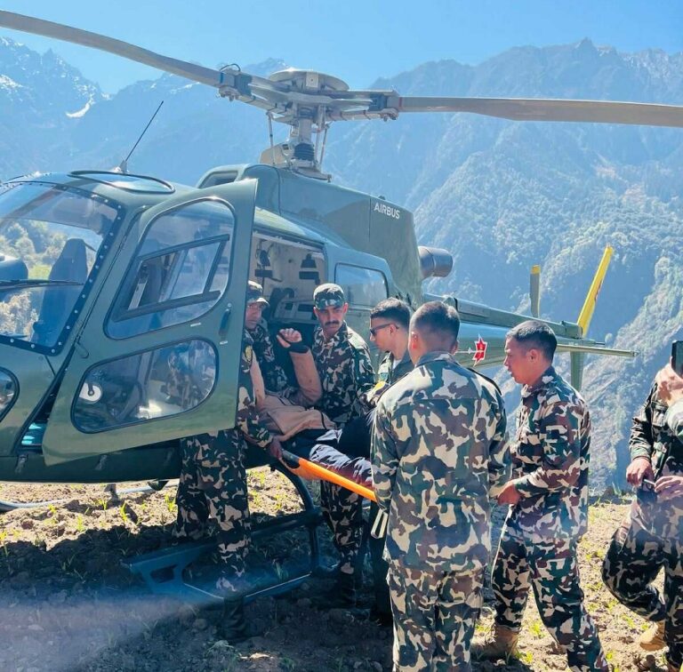 नेपाली सेनाले लाङटाङ राष्ट्रिय निकुञ्जस्थित पर्यटकीय क्षेत्रमा बिरामी परेका एक इजरायली पर्यटकको उद्धार गरेको छ। ती पर्यटक बिरामी परेपछि करिब दुई घण्टा पैदल बोक्दै शेर्पा गाउँसम्म पुर्याएर प्राथमिक उपचार गरेको थियो। त्यसपछि नेपाली सेनाको हेलिकप्टरमार्फत थप उपचारका लागि काठमाडौँ पठाइएको सेनाले जनाएको छ।
