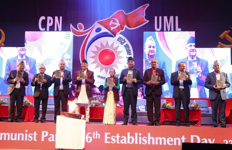 प्रधानमन्त्री एवं नेपाल कम्युनिष्ट पार्टी एमालेका अध्यक्ष केपी शर्मा ओलीले नेपाल कम्युनिष्ट पार्टीको ७६औँ स्थापना दिवसका अवसरमा ६ ज्येष्ठ नेताहरुलाई कम्युनिष्ट योद्धा सम्मान प्रदान गरेका छन् ।