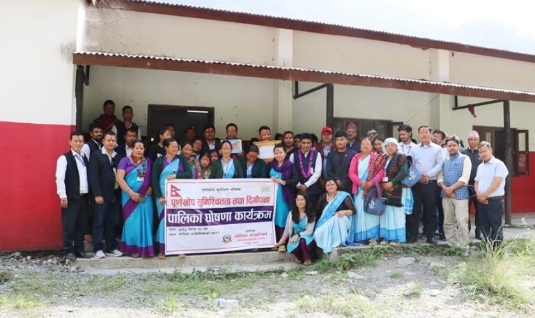 ‘पूर्णखोप सुरक्षित भविष्य’ भन्ने मूल नारासहित म्याग्दीको मालिका गाउँपालिका पूर्णखोप सुनिश्चितता एवं दिगोपना पालिकाको रुपमा घोषित भएको छ । मङ्गलवार पालिका केन्द्र दरबाङमा आयोजित एक समारोहबीच मालिका गाउँपालिकालाई पूर्णखोप सुनिश्चितता तथा दिगोपना पालिकाको रुपमा घोषणा गरिएको हो ।
