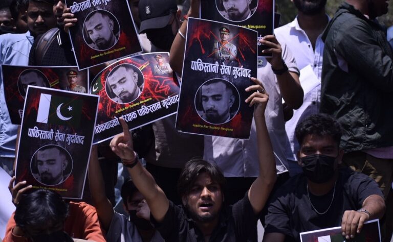 आतङ्कवादी हमलामा परेर बुटवल उपमहानगरपालिका–१४ का २७ वर्षीय सुदीप न्यौपानेले ज्यान गुमाएका थिए । सो घटनाको विरोधमा नेपाल नागरिक अभियानले आतङ्कवादविरुद्ध ऐक्यवद्धता जनाउँदै काठमाडौँस्थित पाकिस्तानी दूतावास अगाडि प्रदर्शन गरेको हो ।
