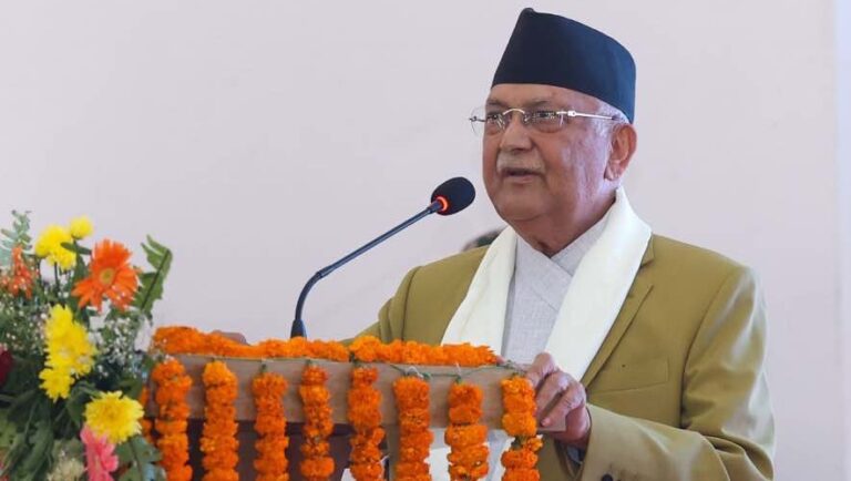 प्रधानमन्त्रीले दुनियाँमा युद्धका बादलहरू मडारिरहेको अवस्थामा युद्ध गर्नका लागि, सैन्य शक्तिलाई परिचालन गर्नका लागि जल, स्थल र आकाश सबै ठाउँबाट सबै ठाउमा युद्ध गर्न सकिने अत्याधुनिक हतियार निर्माण भएका छन्, विश्वशान्तिका लागि चुनौती बनेका बताए । “संसारमा खतरनाक हतियार निर्माण भएका छन्, युद्ध र हिंसाबाट शान्ति स्थापना हुँदैन”, प्रधानमन्त्री ओलीले भने ।