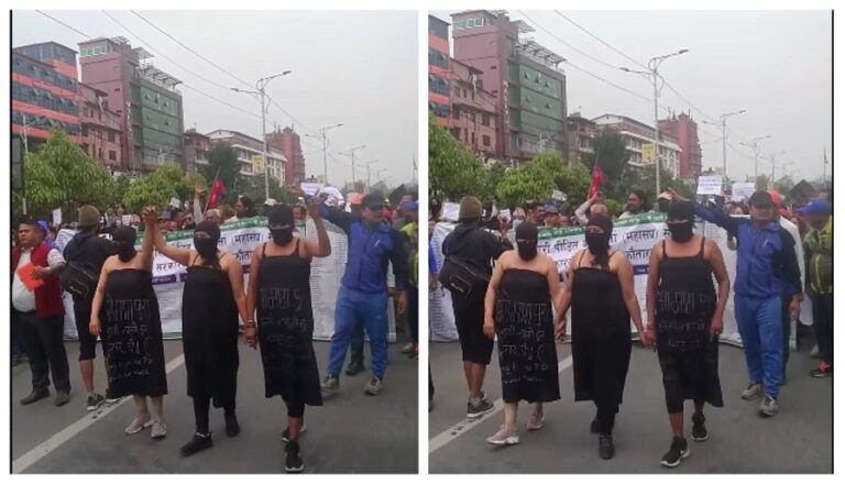 सहकारी संस्थाबाट पीडित व्यक्तिहरूले सोमबार काठमाडौंको माइतीघर मण्डलामा अर्धनग्न प्रदर्शन गरेका छन् ।सरकारलाई दबाब दिन पीडित महिलाहरुले अर्धनग्न प्रदर्शन गरेका हुन्।