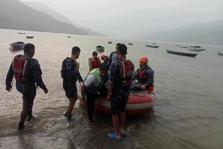 कास्कीको पोखरा महानगरपालिका–६ लेकसाईडस्थित फेवातालमा बिहीबार हावाहुरीका कारण स्टयाण्डिङ्ग डबल प्याडल बोट पल्टिदा तालमा फसेका ७ जनाको नेपाली सेना र सशस्त्र प्रहरीको संयुक्त टोलीले सकुशल उद्वार गरेको छ ।