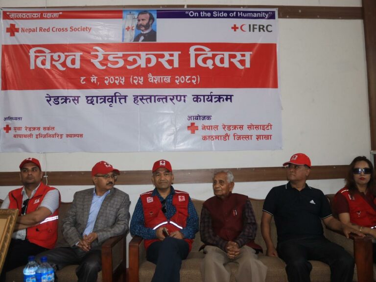 नेपाल रेडक्रस सोसाइटीको केन्द्रीय कार्यालयमा दिवसका अवसरमा सोसाइटीका निमित्त कार्यकारी निर्देशक धर्मदत्त विडारीले झण्डोत्तोलन गरेका थिए ।
