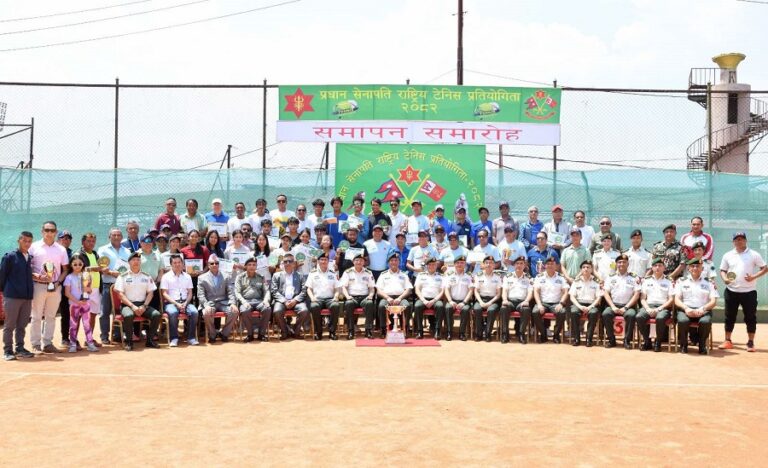नेपाली सेनाको आयोजना तथा नेपाल टेनिस संघको प्राविधिक सहयोगमा यही बैशाख २१ गते देखि सञ्चालन भएको तेस्रो संस्करणको प्रधान सेनापति राष्ट्रिय टेनिस प्रतियोगिता आज प्रधान सेनापति अशोक राज सिग्देलको प्रमुख आतिथ्यमा सम्पन्न भएको छ।