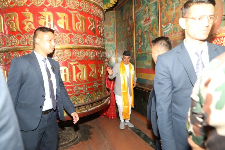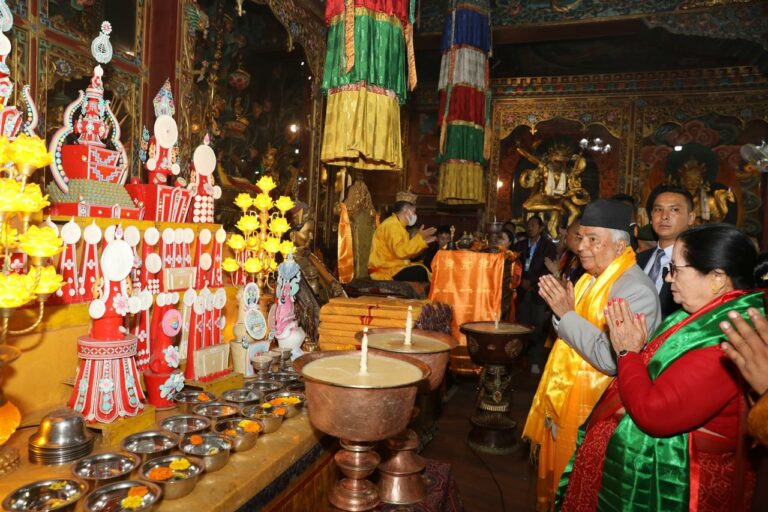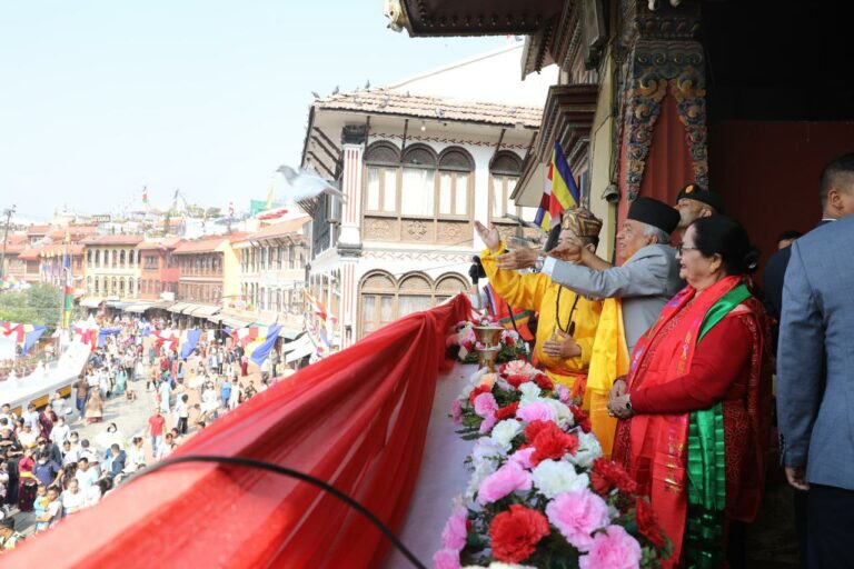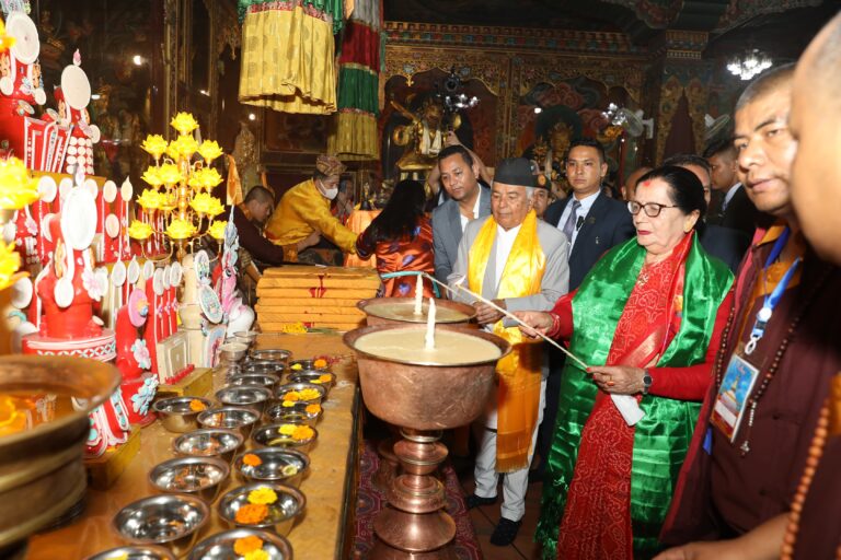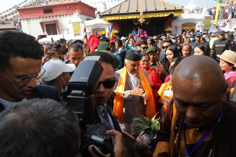राष्ट्रपति रामचन्द्र पौडेल प्रथम महिला सबिता पौडेलसहित बौद्ध तथा मेलम्ची घ्याङ गुठी द्वारा २५६९ औं बुद्ध जयन्तीका अवसरमा सोमबार बिहान बौँद्ध महाचैत्य परिसरमा आयोजित कार्यक्रममा सरिक भएका छन ।