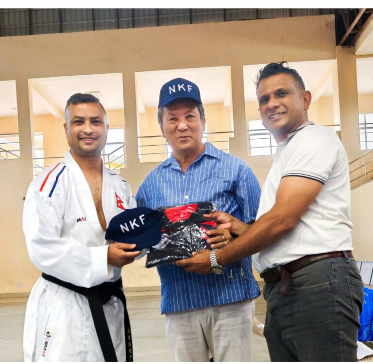 नेपाल कराते महासंघका अध्यक्ष युवराज लामा र कोषाध्यक्ष एवं टिम मनेजर किशोर भट्टराईले आज एक कार्यक्रम विच सम्पुर्ण खेलाडीहरुलाई उक्त सामग्री वितरण गर्नुभयो । खेल पोशाक ट्रयाक सुट र टोपी महासंघका कोषाध्यक्ष भट्टराईले उपलव्ध गराएका हुन ।