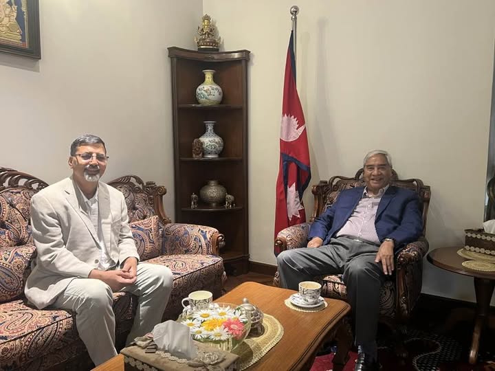 शर्माले लेखेका छन्- ‘पूर्वप्रधानमन्त्री तथा नेपाली कांग्रेसका सभापति शेरबहादुर देउवासँग देशको समसामयिक राजनीतिक परिस्थितिबारे छलफल ।’