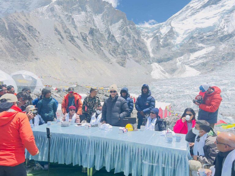 सगरमाथाको आधार शिविरमा ‘जलवायु परिवर्तन, हिमाली जीवन र सरकारसँगको अपेक्षा’ विषयक विशेष संवाद सम्पन्न भएको छ ।