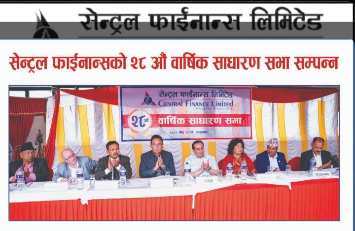 सेन्ट्रल फाईनान्स लिमिटेडको २८ औं वार्षिक साधारण सभा आइतबार सम्पन्न भएको छ । नेपाल राष्ट्र बैंकबाट ’ग’ वर्गको इजाजतप्राप्त यस वित्तीय संस्थाले २८ वर्षदेखि गुणस्तरीय वित्तीय सेवा दिँदै आएको छ ।