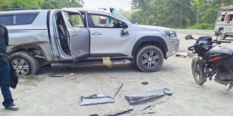 बिएई १४०६ नम्बरको सांसद सवार गाडीलाई बा ५ प ३५२० नम्बरको अर्को कारले ठक्कर दिएको प्रहरीले जनाएको छ। ठक्कर दिने सवारीसाधन जिल्ला प्रहरी कार्यालय, झापाका प्रहरी नायव उपरीक्षक (डिएसपी) खगेन्द्र खड्काको हो। प्रारम्भिक अनुसन्धान अनुसार, डिएसपी खड्का सवारी चलाउँदा निदाएको आशंका गरिएको छ।