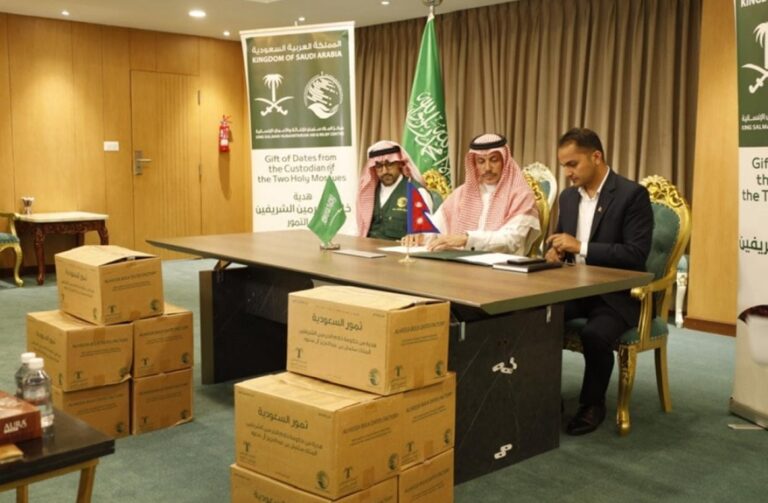 साउदी अरेबियाले नेपाललाई २५ टन साउदी खजुर उपहार दिएको छ । नेपालमा किंग सलमान मानवीय सहायता तथा राहत केन्द्रको पहिलो कार्यक्रमको उद्घा टनको क्रममा उक्त खजुर उपलब्ध गराइएको हो । सोमबार ललितपुरको कुपण्डोलस्थित नेपालका लागि साउदी अरेबियाको राजदूताबासमा आयोजित उद्घाटन कार्यक्रममा साउदी राजदूत साद नासेर अबु हैमदले उक्त खजुर गृह मन्त्रालयका उपसचिव छविलाल पौडेललाई हस्तान्तरण गरेका हुन् ।